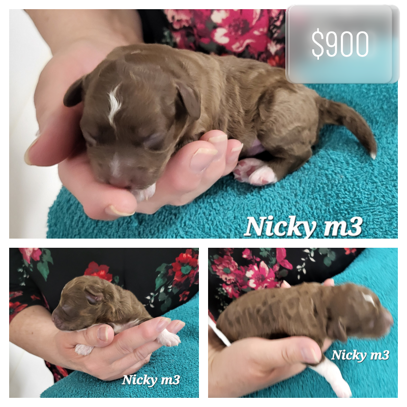 Financing now available to most at 0%. – Introducing Rascal! He was born on 04.06.2026. Call me with your questions. They are very young, but we are having many inquiries about upcoming puppies and the coloring. So, now you can see what is going to be available soon. This is a Pre Buy with a discount. We have variable pricing on these puppies ranging from $1000 to $1200. Call me for that pricing on the puppy you are interested in. I will be adding the pricing to the picture soon. A non refundable/transferable 50% deposit is required to reserve them for you and personally see them grow with updated pictures/video. We will show them after they have had their first vaccination. Usually at 6 weeks for pre-buy customers. Pricing will increase when they reach 8 weeks of age and we have marketing involved. Call us if you want to reserve a puppy 417.241.2352. All puppies are already microchipped. We also offer video chats, typically on the weekends by APPOINTMENT. With the pre buy option, I provide weekly picture updates plus and/ or 1 video a week. They are young now, but typically these puppies mature between 14 – 18#…usually, but not always. Food, treats, vaccination schedule and microchipping is provided with the puppy. Sometimes I do modify the puppy picture, but do try to always post with the original. Typically the background is changed. Ask me for the original vs modified if needed. Their moms picture is included too. I prefer a call, but can also text. _________________________________________________________________________________________________________________________________________