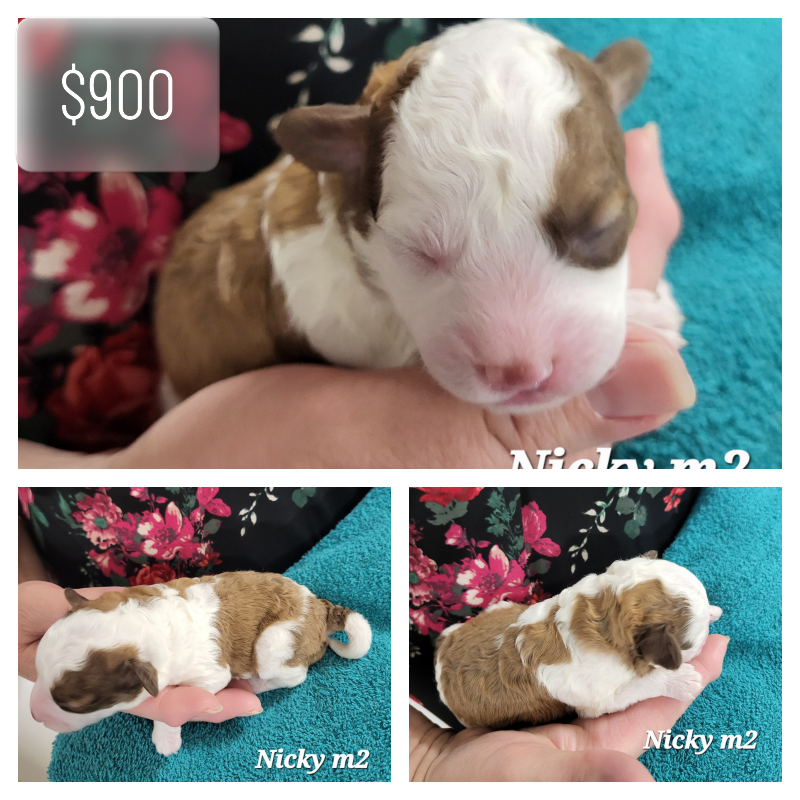 Financing now available to most at 0%. – Introducing Rico! He was born on 04.06.2026. Call me with your questions. They are very young, but we are having many inquiries about upcoming puppies and the coloring. So, now you can see what is going to be available soon. This is a Pre Buy with a discount. We have variable pricing on these puppies ranging from $1000 to $1200. Call me for that pricing on the puppy you are interested in. I will be adding the pricing to the picture soon. A non refundable/transferable 50% deposit is required to reserve them for you and personally see them grow with updated pictures/video. We will show them after they have had their first vaccination. Usually at 6 weeks for pre-buy customers. Pricing will increase when they reach 8 weeks of age and we have marketing involved. Call us if you want to reserve a puppy 417.241.2352. All puppies are already microchipped. We also offer video chats, typically on the weekends by APPOINTMENT. With the pre buy option, I provide weekly picture updates plus and/ or 1 video a week. They are young now, but typically these puppies mature between 14 – 18#…usually, but not always. Food, treats, vaccination schedule and microchipping is provided with the puppy. Sometimes I do modify the puppy picture, but do try to always post with the original. Typically the background is changed. Ask me for the original vs modified if needed. Their moms picture is included too. I prefer a call, but can also text. _________________________________________________________________________________________________________________________________________