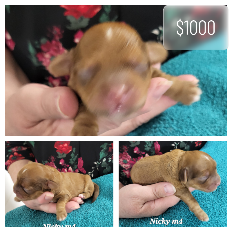 Financing now available to most at 0%. – Introducing Ringo! He was born on 04.06.2026. Call me with your questions. They are very young, but we are having many inquiries about upcoming puppies and the coloring. So, now you can see what is going to be available soon. This is a Pre Buy with a discount. We have variable pricing on these puppies ranging from $1000 to $1200. Call me for that pricing on the puppy you are interested in. I will be adding the pricing to the picture soon. A non refundable/transferable 50% deposit is required to reserve them for you and personally see them grow with updated pictures/video. We will show them after they have had their first vaccination. Usually at 6 weeks for pre-buy customers. Pricing will increase when they reach 8 weeks of age and we have marketing involved. Call us if you want to reserve a puppy 417.241.2352. All puppies are already microchipped. We also offer video chats, typically on the weekends by APPOINTMENT. With the pre buy option, I provide weekly picture updates plus and/ or 1 video a week. They are young now, but typically these puppies mature between 14 – 18#…usually, but not always. Food, treats, vaccination schedule and microchipping is provided with the puppy. Sometimes I do modify the puppy picture, but do try to always post with the original. Typically the background is changed. Ask me for the original vs modified if needed. Their moms picture is included too. I prefer a call, but can also text. _________________________________________________________________________________________________________________________________________