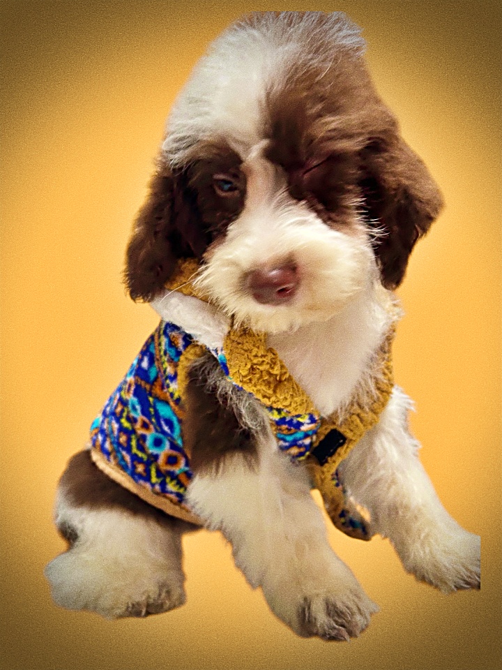 Financing now available to most at 0%. Video available at https://youtu.be/qgM9UI_WsAE – Introducing Simba! He was born on 09/11/25 and turned 8 weeks old on 11/06/25. His coat is going to be a velvety soft wavy coat. He currently has brown eyes and has a Chocolate & White haircoat. Some puppies change colors with age. Estimated adult weight is 16 lbs. He is a Havanese hybrid, AKA HavaPoo. Please use the BUY NOW or a DEPOSIT to reserve this puppy. Our puppies are of good disposition and some with champion lineage with the sired Poodle, making the hybrid portion, aka HavaPoo. The Havanese hybrid is more dependent and an excellent cuddler. The Havanese hybrid want to be next to, or on you. The Havanese hybrid do learn quickly, and Havanese hybrid are extremely intelligent. Patience and persistence is the key to earning their trust…just like training a child. This puppy is already vet checked and ready to come home soon. Call me if you have questions about the size or coloring and I’ll do my best to take an educated guess for the age. Hair coat colors and estimated sizes do change with age of the puppy. If we cannot meet you here, we are still able to transport puppies. Sometimes to your door and other times to an airport close to you. Call for transport pricing to where you live with airline or to your door delivery. Airline is $550. Ground estimates start at $250 , then typically $.75 a mile from zip code 65706. All puppies are microchipped and can be registered for you FREE of charge. Visits are by appointment and encouraged as we are proud of these puppies and do like to meet the new parents if possible. We show puppies at 8 weeks of age (once they’ve had their 2nd set of vaccinations). We also offer video chats, typically on the weekends by APPOINTMENT.