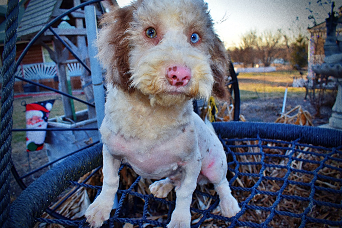 Financing now available to most at 0%. Video available at https://youtube.com/shorts/DhRu46VAbwE?feature=share – Introducing Webster! He was born on 10/02/25 and turned 8 weeks old on 11/27/25. His coat is going to be a velvety soft wavy coat. He currently has a Chocolate Merle & White haircoat. Some puppies change colors with age. Estimated adult weight 18 lbs. He is a Havanese hybrid, AKA HavaPoo. Please use the BUY NOW or a DEPOSIT to reserve this puppy. Our puppies are of good disposition and some with champion lineage with the sired Poodle, making the hybrid portion, aka HavaPoo. The Havanese hybrid is more dependent and an excellent cuddler. The Havanese hybrid want to be next to, or on you. The Havanese hybrid do learn quickly, and Havanese hybrid are extremely intelligent. Patience and persistence is the key to earning their trust…just like training a child. This puppy is already vet checked and ready to come home soon. Call me if you have questions about the size or coloring and I’ll do my best to take an educated guess for the age. Hair coat colors and estimated sizes do change with age of the puppy. If we cannot meet you here, we are still able to transport puppies. Sometimes to your door and other times to an airport close to you. Call for transport pricing to where you live with airline or to your door delivery. Airline is $550. Ground estimates start at $1.00 a mile from zip code 65706 with a minimum of $250. All puppies are already microchipped. Visits are by appointment and encouraged as we are proud of these puppies and do like to meet the new parents if possible. We show puppies at 8 weeks of age (once they’ve had their 2nd set of vaccinations). We also offer video chats, typically on the weekends by APPOINTMENT.