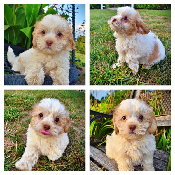 Video at https://youtu.be/Tgnbirw0A5s – Introducing Bambi!  She was born on 07/18/2025 and turned 8 weeks old on 09/12/25.  She has hazel-brown eyes and has a Red-Chocolate and White coat. Some puppies change colors with age. Estimated adult weight is 10-12 lbs.   She will be SMALL!  She is a Havanese hybrid, AKA HavaPoo. Please use the BUY NOW or a DEPOSIT to reserve this puppy. Our puppies are of good disposition and some with champion lineage with the sired Poodle, making the hybrid portion, aka HavaPoo. The Havanese hybrid is more dependent and an excellent cuddler. The Havanese hybrid want to be next to, or on you. The Havanese hybrid do learn quickly, and Havanese hybrid are extremely intelligent. Patience and persistence is the key to earning their trust…just like training a child.  This puppy is already vet checked and ready to come home soon.  Call me if you have questions about the size or coloring and I’ll do my best to take an educated guess for the age. Hair coat colors and estimated sizes do change with age of the puppy.  If we cannot meet you here, we are still able to transport puppies. Sometimes to your door and other times to an airport close to you.  Call for transport pricing to where you live with airline or to your door delivery. Airline is $550. Ground estimates start at $250 , then $.75 a mile from zip code 65706.  All puppies are microchipped and can be registered for you FREE of charge. Visits are welcome and  encouraged as we are proud of these puppies and do like to meet the new parents if possible.  We show puppies at 7 weeks of age (once they’ve had their 2nd set of vaccinations).  We also offer video chats, typically on the weekends by appointment.  If you just can’t wait for one of our beautiful pups and you wander off, please only pay using a credit card to other breeders/pet stores.  There is an estimate that 80% of puppy ads are scams. We want you to have a good experience purchasing a puppy, no matter where you purchase it from.  We own the parents and they are on site at our home.  Thank you.