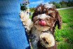 Video available at https://youtu.be/AxJ8B1BuWLg Introducing Ernie.  He was born on 08/07/25 and turned 8 weeks old on 10/02/25.  His coat is going to be a velvety soft wavy coat.  He currently has Brown eyes and a Chocolate & White haircoat.  Some puppies change colors with age. Estimated adult weight is 12 lbs. He is a Havanese hybrid, AKA HavaPoo. Please use the BUY NOW or a DEPOSIT to reserve this puppy. Our puppies are of good disposition and some with champion lineage with the sired Poodle, making the hybrid portion, aka HavaPoo. The Havanese hybrid is more dependent and an excellent cuddler. The Havanese hybrid want to be next to, or on you. The Havanese hybrid do learn quickly, and Havanese hybrid are extremely intelligent. Patience and persistence is the key to earning their trust…just like training a child.  This puppy is already vet checked and ready to come home soon.  Call me if you have questions about the size or coloring and I’ll do my best to take an educated guess for the age. Hair coat colors and estimated sizes do change with age of the puppy.  If we cannot meet you here, we are still able to transport puppies. Sometimes to your door and other times to an airport close to you.  Call for transport pricing to where you live with airline or to your door delivery. Airline is $550. Ground estimates start at $250 , then typically $.75 a mile from zip code 65706.  All puppies are microchipped and can be registered for you FREE of charge. Visits are by appointment and encouraged as we are proud of these puppies and do like to meet the new parents if possible.  We show puppies at 8 weeks of age (once they’ve had their 2nd set of vaccinations).  We also offer video chats, typically on the weekends by APPOINTMENT.