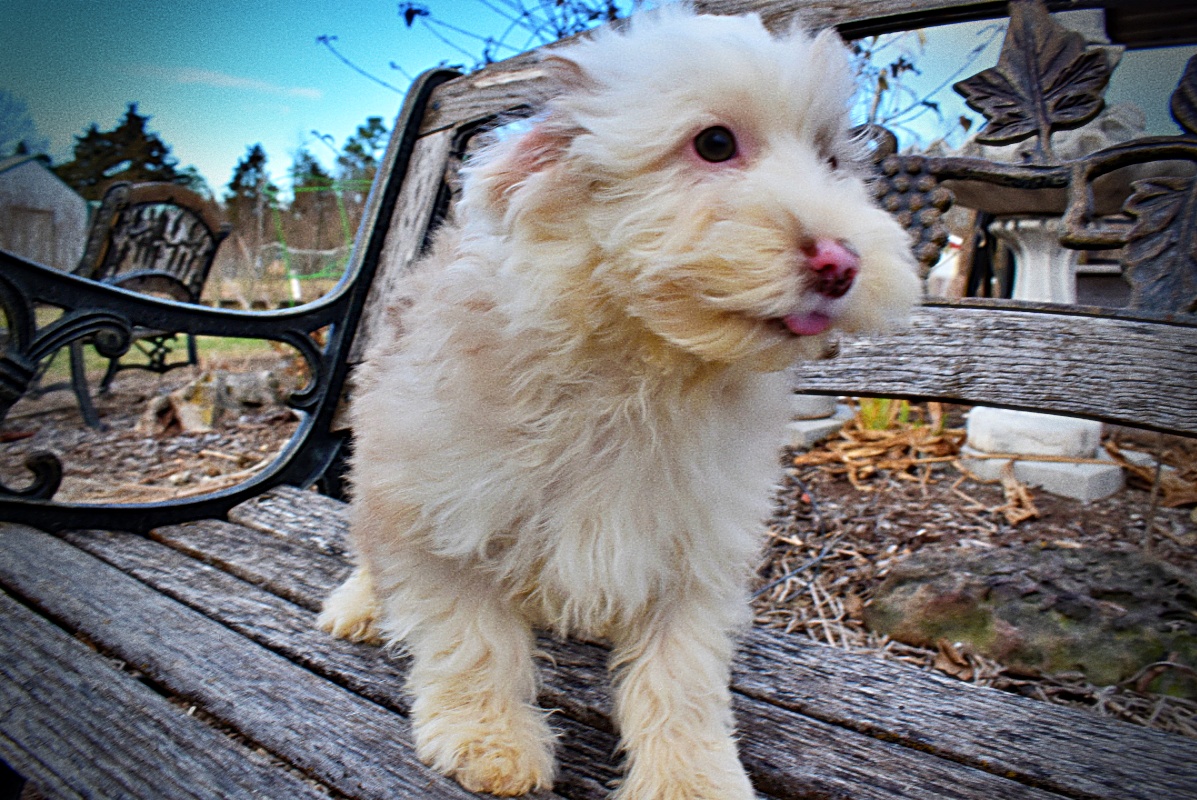 Financing now available to most at 0%. Video available at https://youtube.com/shorts/jFHjAwD1Vec – Introducing Wiggles! She was born on 10/02/25 and turned 8 weeks old on 11/27/25. Her coat is going to be a velvety soft wavy coat. She currently has a Chocolate Merle & White haircoat. Some puppies change colors with age. Estimated adult weight is 16 lbs. She is a Havanese hybrid, AKA HavaPoo. Please use the BUY NOW or a DEPOSIT to reserve this puppy. Our puppies are of good disposition and some with champion lineage with the sired Poodle, making the hybrid portion, aka HavaPoo. The Havanese hybrid is more dependent and an excellent cuddler. The Havanese hybrid want to be next to, or on you. The Havanese hybrid do learn quickly, and Havanese hybrid are extremely intelligent. Patience and persistence is the key to earning their trust…just like training a child. This puppy is already vet checked and ready to come home soon. Call me if you have questions about the size or coloring and I’ll do my best to take an educated guess for the age. Hair coat colors and estimated sizes do change with age of the puppy. If we cannot meet you here, we are still able to transport puppies. Sometimes to your door and other times to an airport close to you. Call for transport pricing to where you live with airline or to your door delivery. Airline is $550. Ground estimates start at $1.00 a mile from zip code 65706 with a minimum of $250. All puppies are already microchipped. Visits are by appointment and encouraged as we are proud of these puppies and do like to meet the new parents if possible. We show puppies at 8 weeks of age (once they’ve had their 2nd set of vaccinations). We also offer video chats, typically on the weekends by APPOINTMENT.
