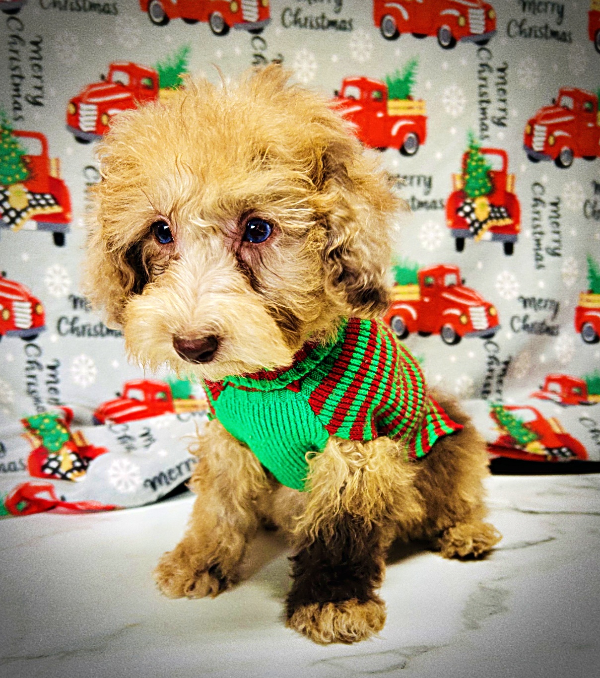 Financing now available to most at 0%. Video available at https://youtu.be/4LKCVnbQgqk – Introducing Yummy! She was born on 09/15/25 and turned 8 weeks old on 11/10/25. Her coat is going to be a velvety soft wavy coat. She currently has a Red Chocolate Merle haircoat. Some puppies change colors with age. Estimated adult weight is 14 lbs. She is a Havanese hybrid, AKA HavaPoo. Please use the BUY NOW or a DEPOSIT to reserve this puppy. Our puppies are of good disposition and some with champion lineage with the sired Poodle, making the hybrid portion, aka HavaPoo. The Havanese hybrid is more dependent and an excellent cuddler. The Havanese hybrid want to be next to, or on you. The Havanese hybrid do learn quickly, and Havanese hybrid are extremely intelligent. Patience and persistence is the key to earning their trust…just like training a child. This puppy is already vet checked and ready to come home soon. Call me if you have questions about the size or coloring and I’ll do my best to take an educated guess for the age. Hair coat colors and estimated sizes do change with age of the puppy. If we cannot meet you here, we are still able to transport puppies. Sometimes to your door and other times to an airport close to you. Call for transport pricing to where you live with airline or to your door delivery. Airline is $550. Ground estimates start at $1.00 a mile from zip code 65706 with a minimum of $250. All puppies are already microchipped. Visits are by appointment and encouraged as we are proud of these puppies and do like to meet the new parents if possible. We show puppies at 8 weeks of age (once they’ve had their 2nd set of vaccinations). We also offer video chats, typically on the weekends by APPOINTMENT.